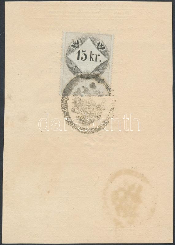 Leírás: 1860 Igazolási jegy, hátoldalon 15 kr okmánybélyeggel / ID