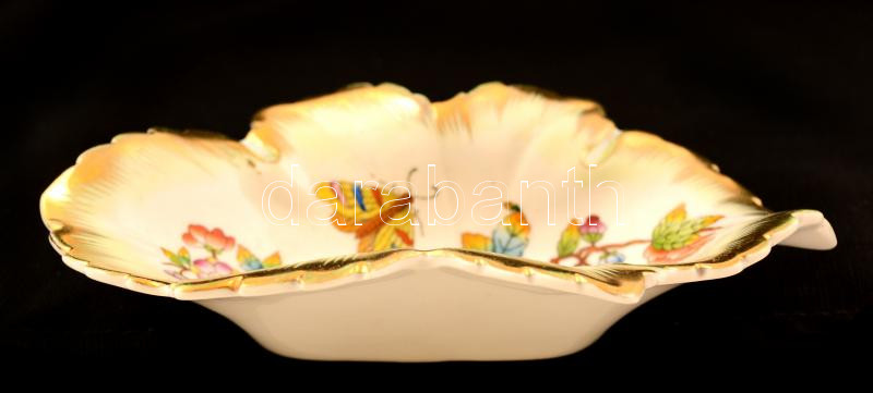 Leírás: Herendi Viktória mintás leveles tálka, kézzel festett, jelzett, kopásnyomokkal, 15,5×8×4 cm