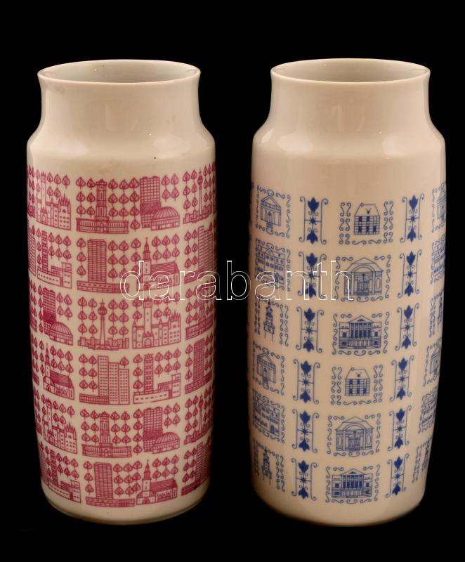 Leírás: Weimar matricás váza párban, jelzett, hibátlan, m:15 cm (2×)
