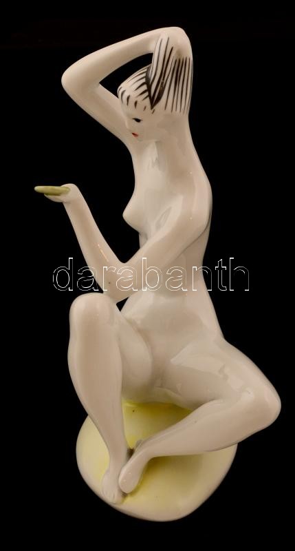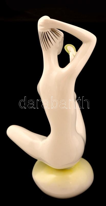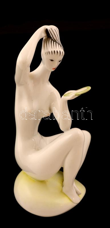Leírás: Zsolnay tükrös fésülködő akt, kézzel festett, jelzett, hibátlan, m:22 cm