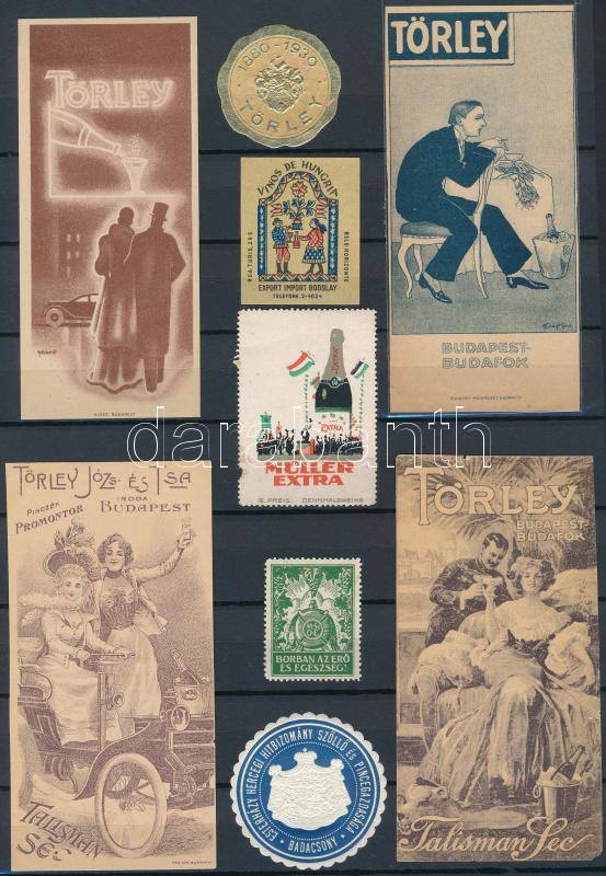 Leírás: Törley számolócédulák, Müller extra levélzáró, Törley pecsétbélyeg, stb.