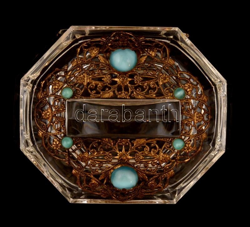 Leírás: Üveg bonbonnier, belső száján sérült. 12 cm