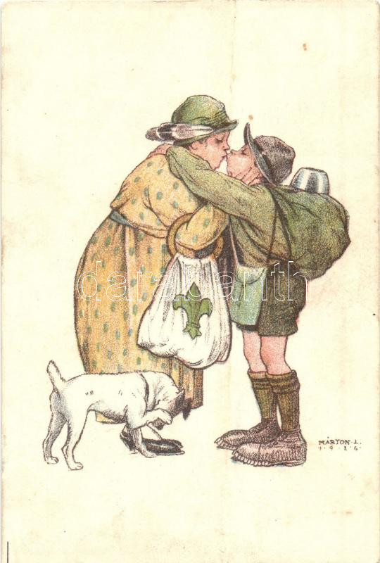 Leírás: Cserkészlap, Magyar Cserkészszövetség kiadása / Hungarian scout postcard, s: Márton L.