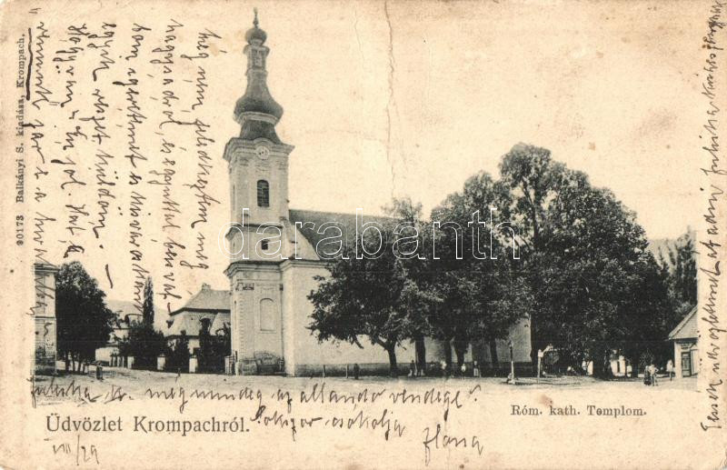 Leírás: Korompa, Krompach; Római katolikus templom, kiadja Balkányi S. / church (fa)