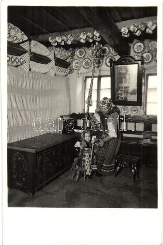 Leírás: Kalotaszegi parasztház belső / Transylvanian folklore from Kalotaszeg, house interior (vágott / cut)