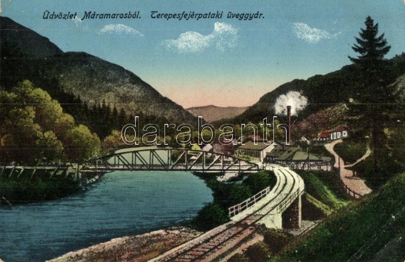 Leírás: Terebesfejérpatak, Dilova; Üveggyár, Berger Miksa utóda kiadása / glassworks, railway (EB)