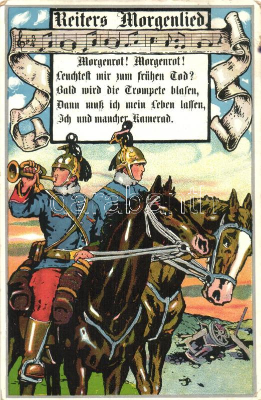 Reites Morgenlied / WWI German military song, cavalrymen, Künstler-Kri... https://www.darabanth.com/hu/281-Gyorsarveres/281.0/Kepeslapok/Katonai~200084/Reites-Morgenlied-WWI-German-military-song-cavalrymen-Kunstler-Kriegspostkarten-Mappe-12695-li~II1206494