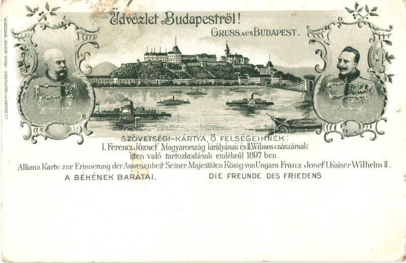 Leírás: 1897 Budapest, I. Ferencz József és II. Vilmos császár Budapesten való tartózkodásuk emlékéül, Art Nouveau litho (b)