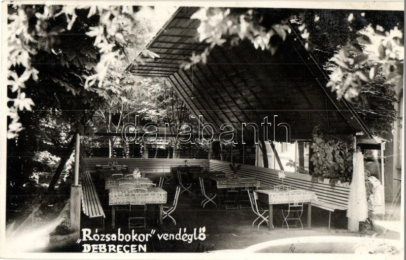 1937 Debrecen, Rózsabokor vendéglő kerthelyisége, photo https://www.darabanth.com/hu/281-Gyorsarveres/281.0/Kepeslapok/Magyarorszag~200006/1937-Debrecen-Rozsabokor-vendeglo-kerthelyisege-photo~II1449206