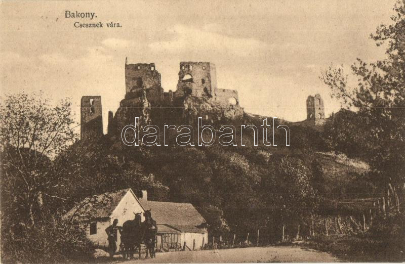 Csesznek, várrom, Bakony, kiadja Scherer János https://www.darabanth.com/hu/281-Gyorsarveres/281.0/Kepeslapok/Magyarorszag~200006/Csesznek-varrom-Bakony-kiadja-Scherer-Janos~II1451351