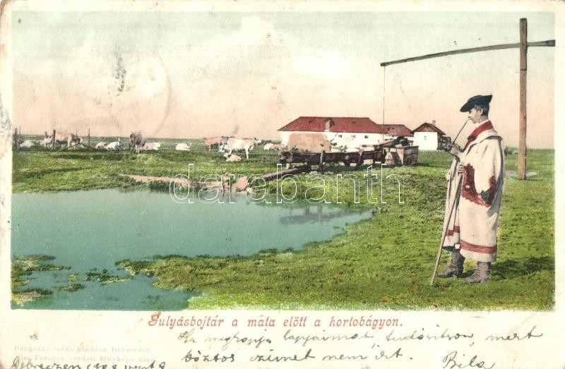 Leírás: Hortobágy, Gulyásbojtár a máta előtt, kiadja Pongrácz Géza, Kiss Ferencz eredeti fényképe után (EB)