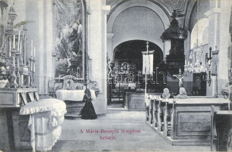 Máriabesnyő, templom, belső; Neszveda Antal kiadása https://www.darabanth.com/hu/281-Gyorsarveres/281.0/Kepeslapok/Magyarorszag~200006/Mariabesnyo-templom-belso-Neszveda-Antal-kiadasa~II1451714