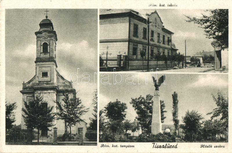 Tiszafüred, Római katolikus iskola és templom, Hősök szobra https://www.darabanth.com/hu/281-Gyorsarveres/281.0/Kepeslapok/Magyarorszag~200006/Tiszafured-Romai-katolikus-iskola-es-templom-Hosok-szobra~II1449840