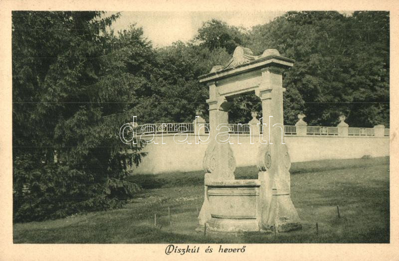 Leírás: Törökbálint, Ferenc József Kereskedelmi Kórház Tüdőbeteg szanatóriuma, Díszkút és heverő