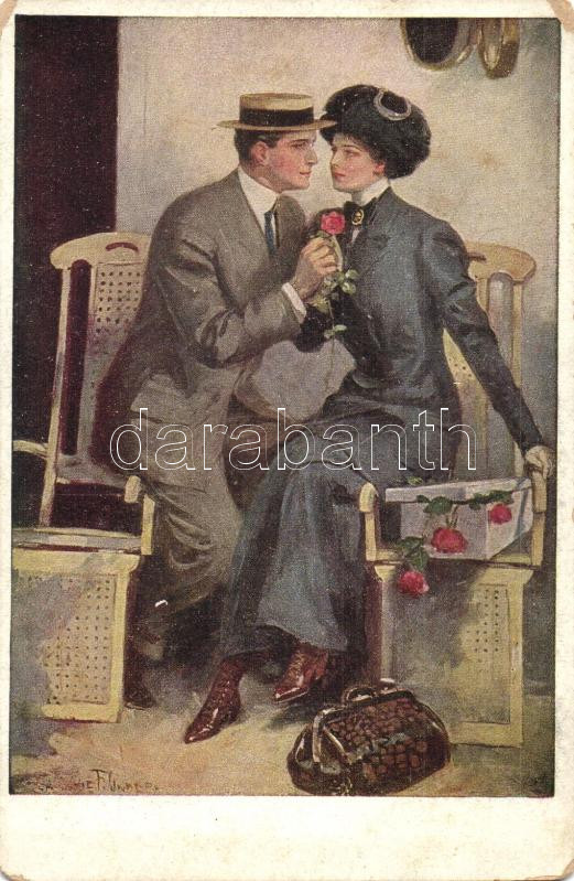 Romantic couple, art postcard, M. M. No. 834. s: Clarence F. Underwood https://www.darabanth.com/hu/281-Gyorsarveres/281.0/Kepeslapok/Muveszlapok~200091/Romantic-couple-art-postcard-M-M-No-834-s-Clarence-F-Underwood~II1390523