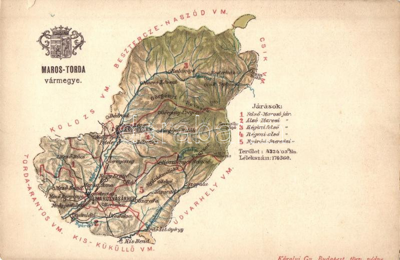 Maros-Torda vármegye térképe; Károlyi Gy. kiadása / Map of Maros-Tord... https://www.darabanth.com/hu/281-Gyorsarveres/281.0/Kepeslapok/Terkep~200101/Maros-Torda-varmegye-terkepe-Karolyi-Gy-kiadasa--Map-of-Maros-Torda-County-b~II1449510