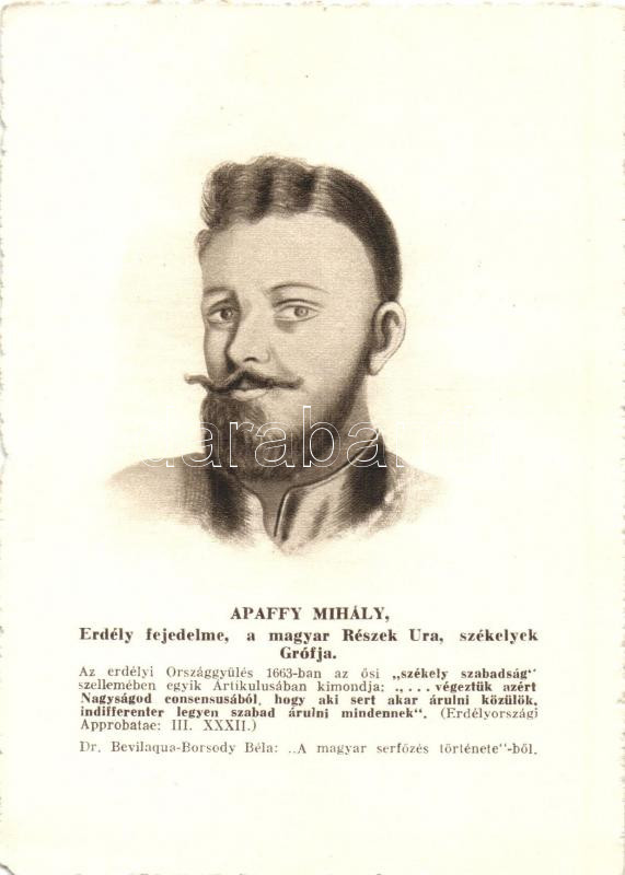 Apaffy Mihály, Erdély fejedelme; Dr. Bevilaqua-Borsody Béla "A magyar serfőzés története"-ből / Michael I Apafi, Prince of Transylvania; with excerpt from Dr. Béla Bevilaqua-Borsody's 'History of the Hungarian Brewery'