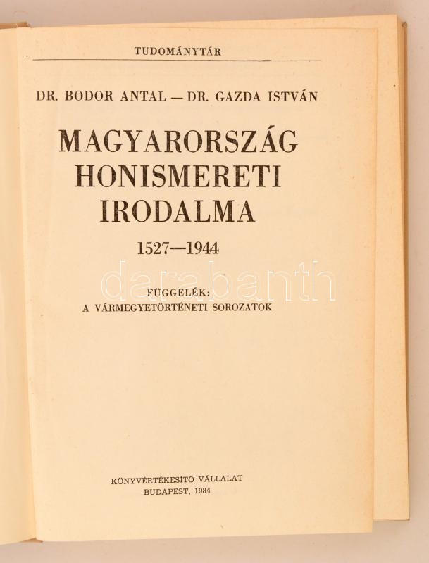 Bodor Antal dr.- Gazda István dr.: Magyarország honismereti irodalma 1... https://www.darabanth.com/hu/281-Gyorsarveres/281.0/Konyvek/Konyvek-Egyeb-ritkasagok~42/Bodor-Antal-dr-Gazda-Istvan-dr-Magyarorszag-honismereti-irodalma-1527-1944-Budapest-1984-KC3~II1433405