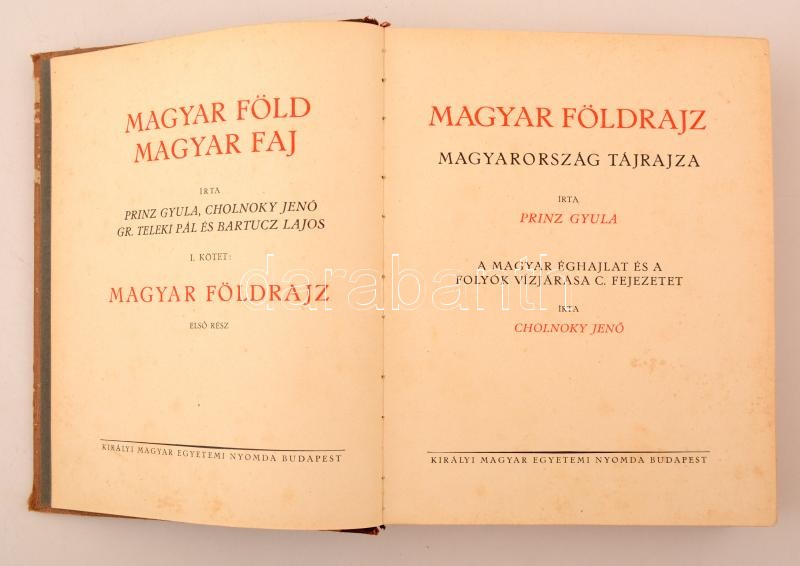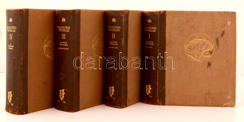 Prinz Gyula, Cholnoky Jenő, Gr. Teleki Pál, Bartucz Lajos: Magyar föld, magyar faj I-IV. kötet, Komplett sorozat. Kissé kopott gerincű félbőr kötésben.
