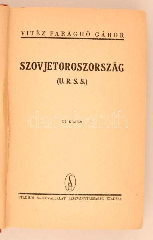 Faraghó Gábor: Szovjetoroszország. Bp., é. n., Stádium. Kissé kopott f... https://www.darabanth.com/hu/281-Gyorsarveres/281.0/Konyvek/Konyvek-Utazas-varosok~29/Faragho-Gabor-Szovjetoroszorszag-Bp-e-n-Stadium-Kisse-kopott-felvaszon-kotesben-e~II1451334