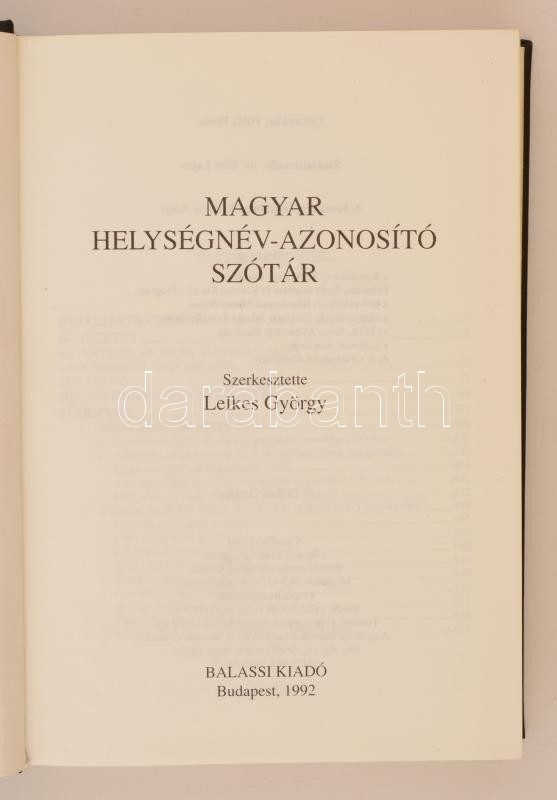 Leírás: Magyar helységnév-azonosító szótár. Szerk.: Lelkes György. Budapest, 1992, Balassi Kiadó. Kiadói műbőr kötés. Jó állapotban.