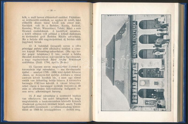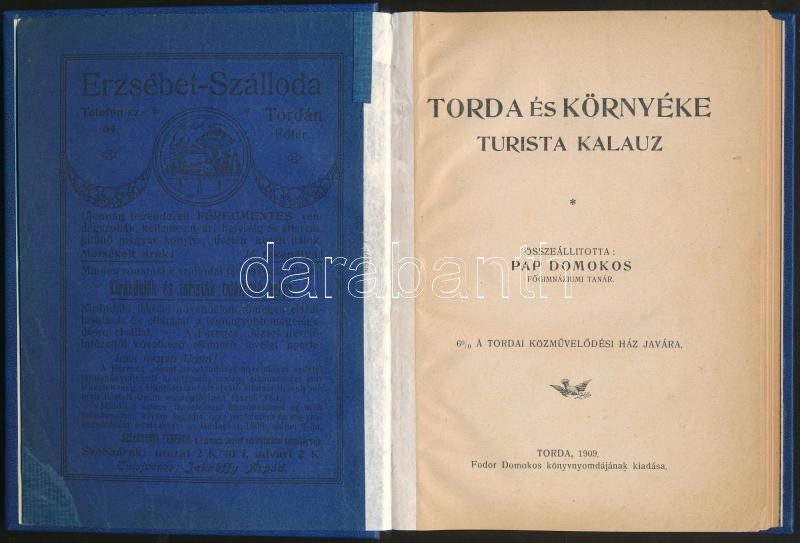 Pap Domokos: Torda és környéke turista kalauz. Torda, 1909, Fodor Domokos könyvnyomdája. Modern műbőr kötésben (eredeti borító belekötve), 17 fotóval, utcatérképpel, jó állapotban, 93 p.