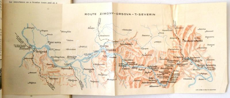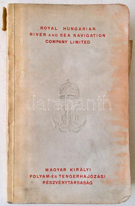 The Danube. A Duna. Budapest, én., Magyar Királyi Folyam-és Tengerhajózási Rt, 146 p.+ 2 térképmelléklettel. Kiadói papírkötés. Angol nyelven. / Paperbinding, in english language. Megviselt állapotban.