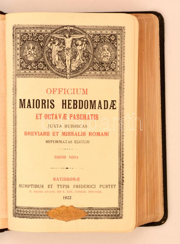 Leírás: Officium maioris hebdomadae et octavae Paschatis. Regensburg, 1922, Friedrich Pustet. Műbőr kötésben, jó állapotban.