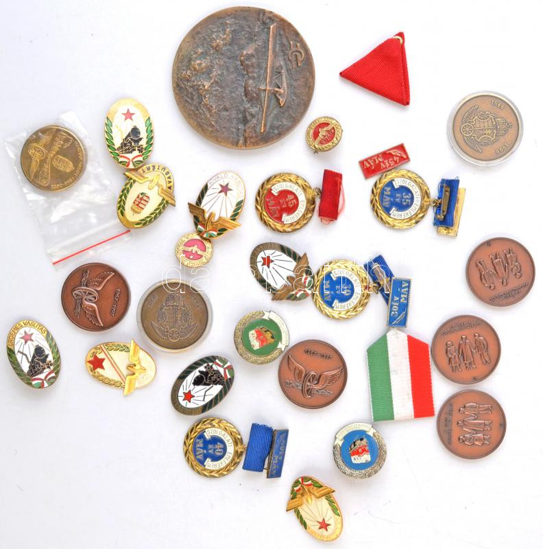 ~1970-2007. Rendkívül tartalmas (~27db) MÁV tétel, közte 1997. "30 éves a Szolnoki MÁV Kórház", ~1990. "A vasutért" zománcozott fém jelvény, DN "Siklórepülés" Br plakett (89mm) T:vegyes
