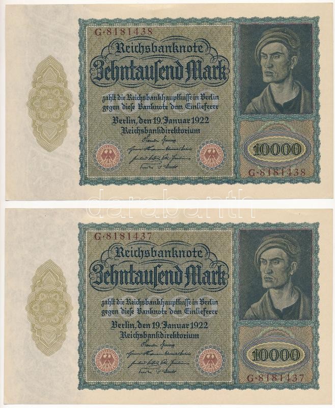 Németország / Weimari Köztársaság 1922. 10.000M (4x) sorszámkövetők T:... https://www.darabanth.com/hu/281-Gyorsarveres/281.0/Numizmatika/Kulfoldi-bankjegyek~300012/Nemetorszag-Weimari-Koztarsasag-1922-10000M-4x-sorszamkovetok-TI---Germany-Weimar-~II1448256