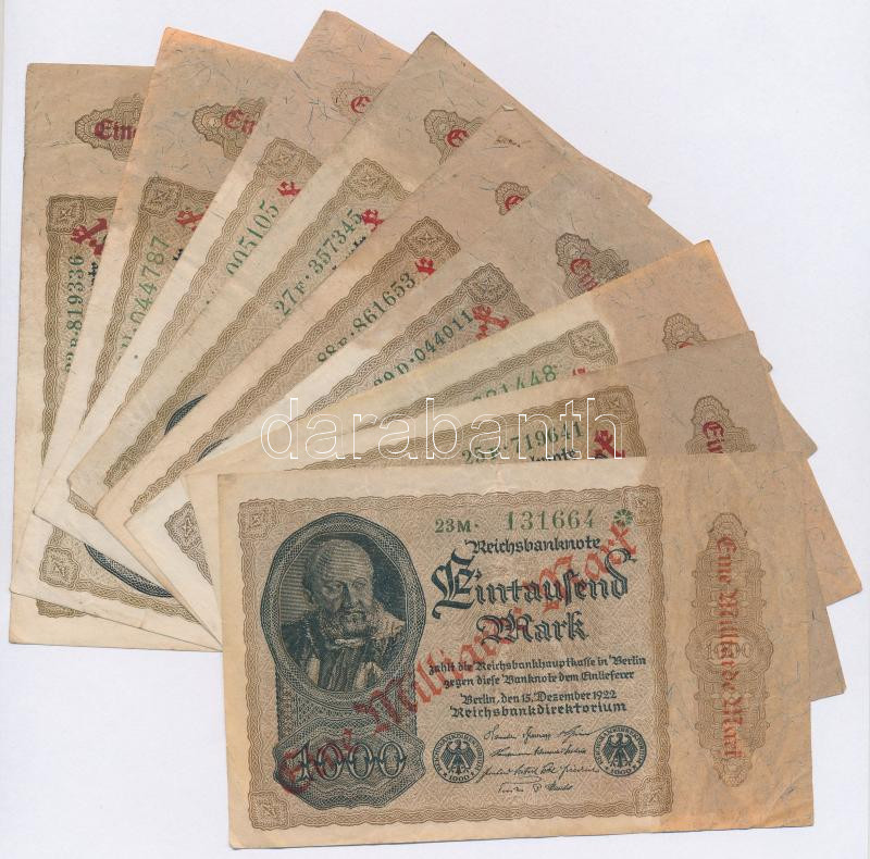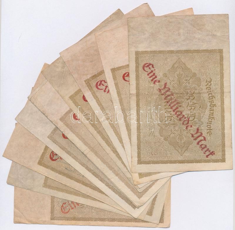 Németország / Weimari Köztársaság 1922. 1000M "Eine Milliard Mark" felülnyomással (10x) T:III