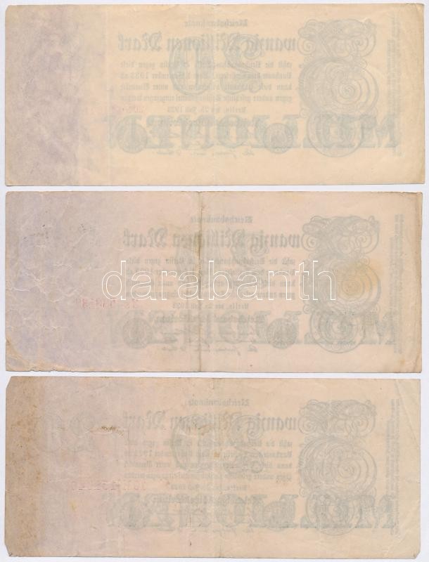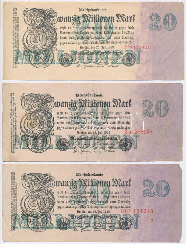 Leírás: Németország / Weimari Köztársaság 1923. 20.000.000M (3x) 6 jegyű sorszámmal T:III