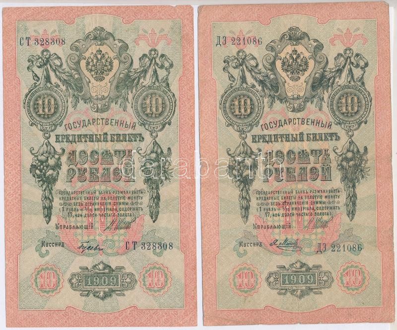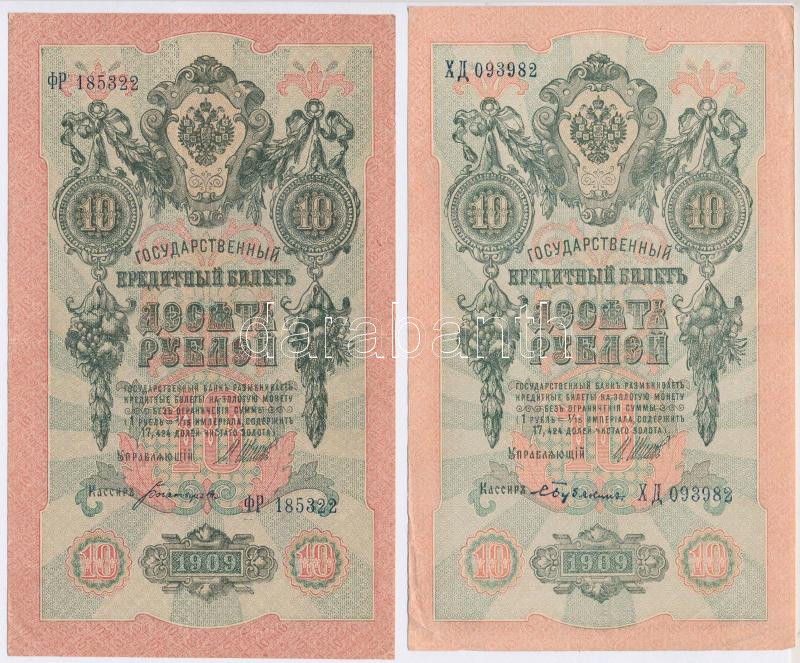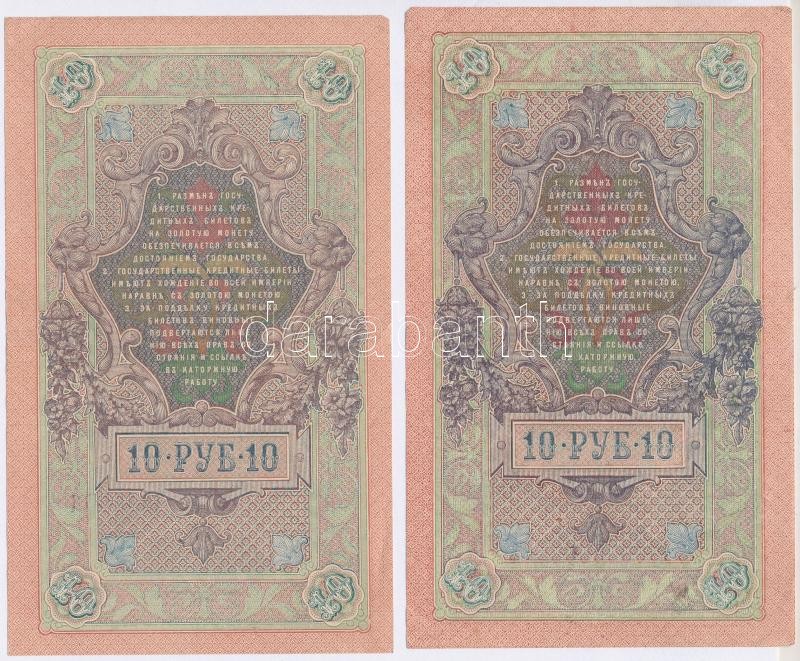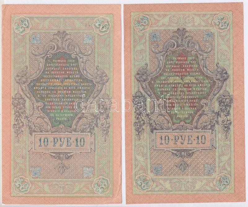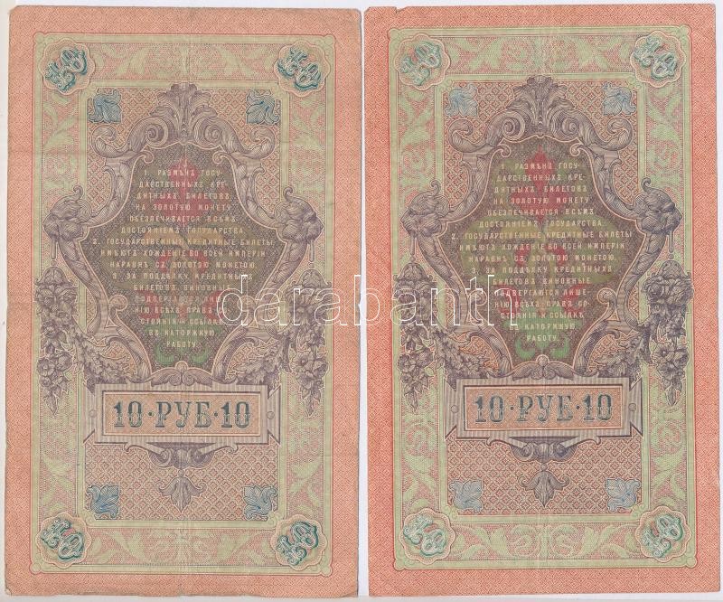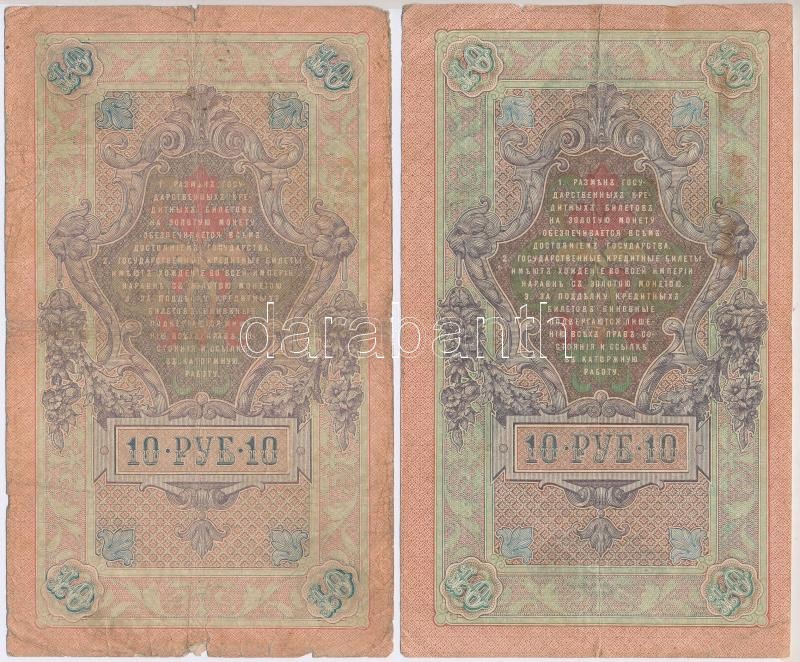 Orosz Birodalom 1909-1917. (1909) 10R (8x) a pénztáros aláírás mindegyiknél eltérő. Szign.: Shipov,Konshin (1db) T:II,III,III-