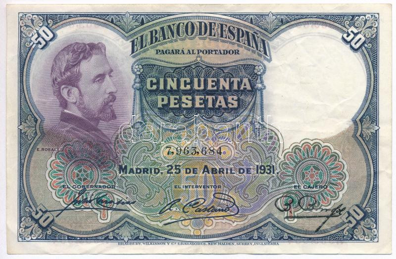 Spain 1931. 50 Pesetas C:F https://www.darabanth.com/hu/281-Gyorsarveres/281.0/Numizmatika/Kulfoldi-bankjegyek~300012/Spanyolorszag-1931-50P-TIII--Spain-1931-50-Pesetas-CF~II1447981