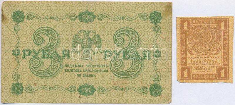 Russian Socialist Federated Soviet Republic 1918. 3 Rubles + 1919. 1 Rubles C:F spotted