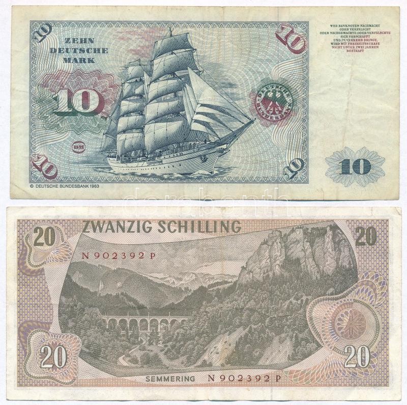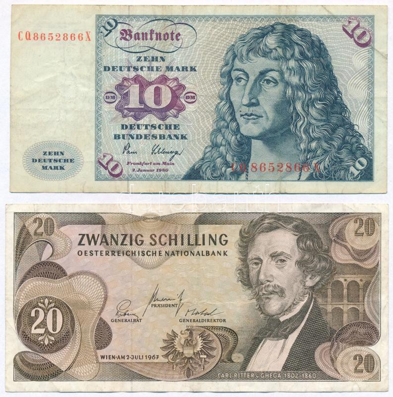 Mixed: Austria 19... https://www.darabanth.com/hu/281-Gyorsarveres/281.0/Numizmatika/Kulfoldi-bankjegyek~300012/Vegyes-Ausztria-1967-20Sch-plus-NSZK-1980-10M-TIII--Mixed-Austria-1967-20-Schilling-plus-FRG-1980-1~II1452023