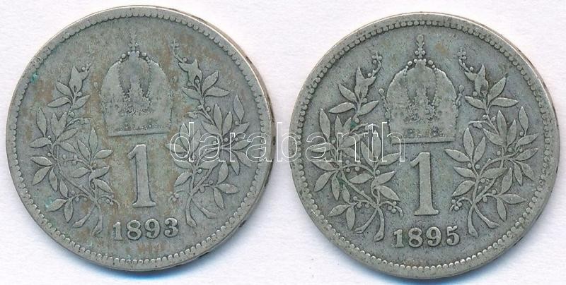 Leírás: Ausztria 1893-1895. 1K Ag "Ferenc József" (2x) T:2-,3