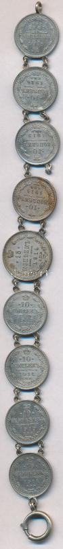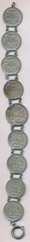 Orosz Birodalom 1913-1914. 10k Ag (8x) + 15k Ag összefűzve láncon karkötőnek T:2 egy láncszem sérült