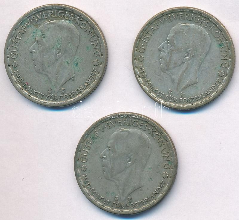 Leírás: Svédország 1946TS-1948TS 1Kr Ag "V. Gusztáv" (3xklf) T:2- patina