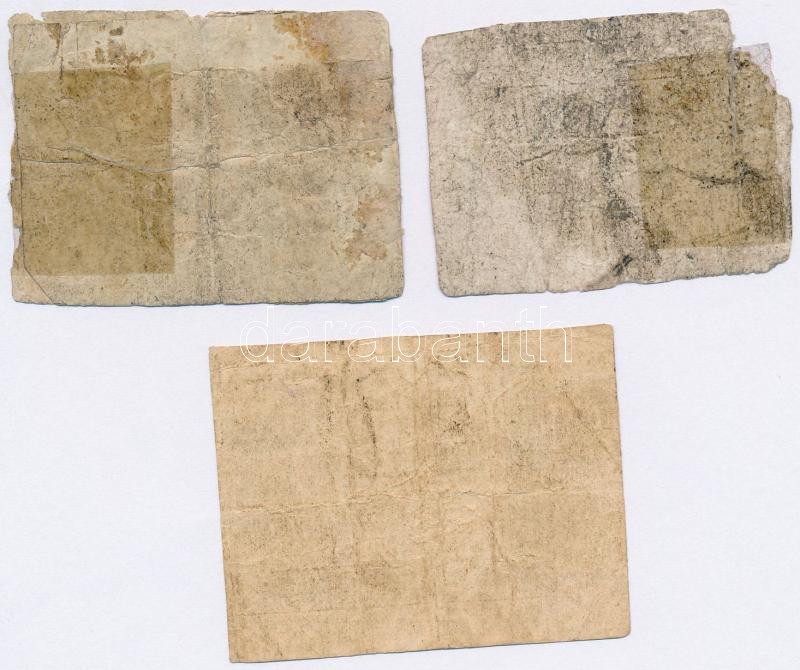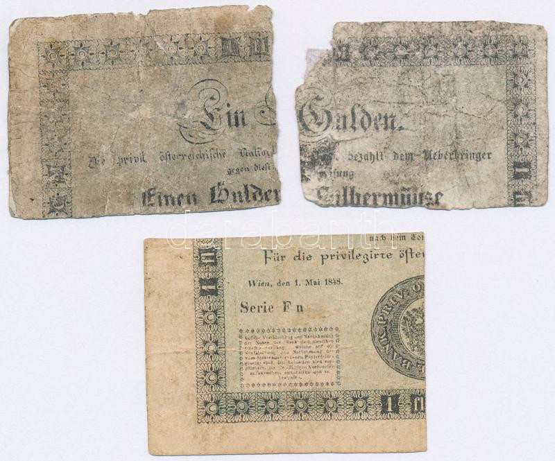 1848. 1G bankjegy három darabja, aprópénz helyettesítő darabkák T:III-V