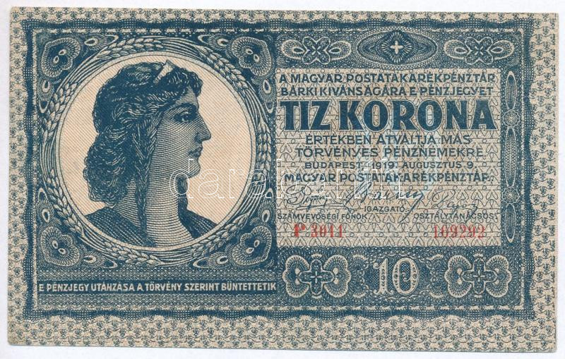 1919. augusztus 9. 10K elcsúszott, ferde nyomat T:II,II-