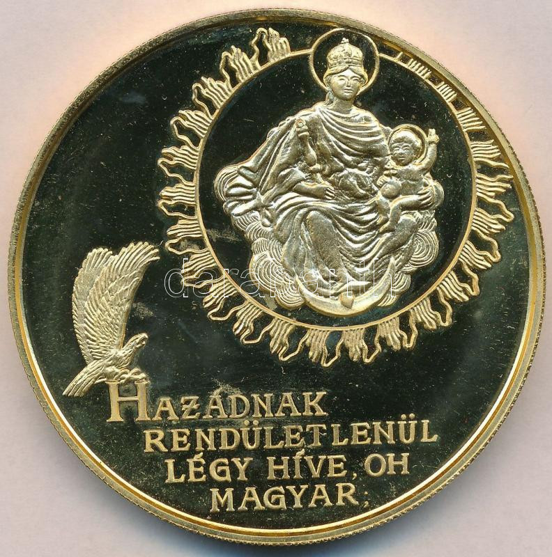 Bognár György (1944-) 1990. "Magyar Köztársaság 1956-1989. Október 23. / Hazádnak rendületlenül légy hÃve, oh magyar;" piefort aranyozott Cu emlékérem, sorszámozott tanúsÃtvánnyal (65mm) T:2(PP)
