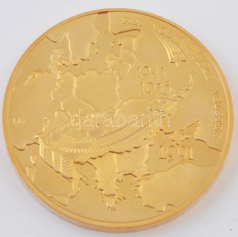 Leírás: Fritz Mihály (1947-) 1991. "Pax Vobis - Béke veletek 1945-1956." aranyozott pierfort emlékérem (139g/65mm) T:PP ujjlenyomat