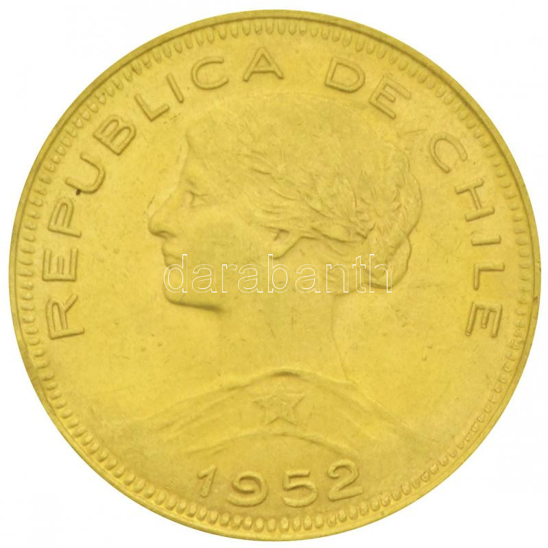 Chile 1952. 100P Au "Diez Condores" (20,36g/0.900) T:2 karc,... https://www.darabanth.com/hu/281-Gyorsarveres/281.0/Numizmatika/Magyar-es-kulfoldi-aranypenzek-es-emlekveretek~300011/Chile-1952-100P-Au-Diez-Condores-20-36g0900-T2-karc-ph--Chile-1952-100-Pesos-Au-Diez-Con~II1450605