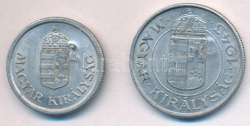 Leírás: 1943. 2P Al + 1944. 1P Al mindkettő hamis sarló-kalapács ellenjeggyel (fake countersign) T:2