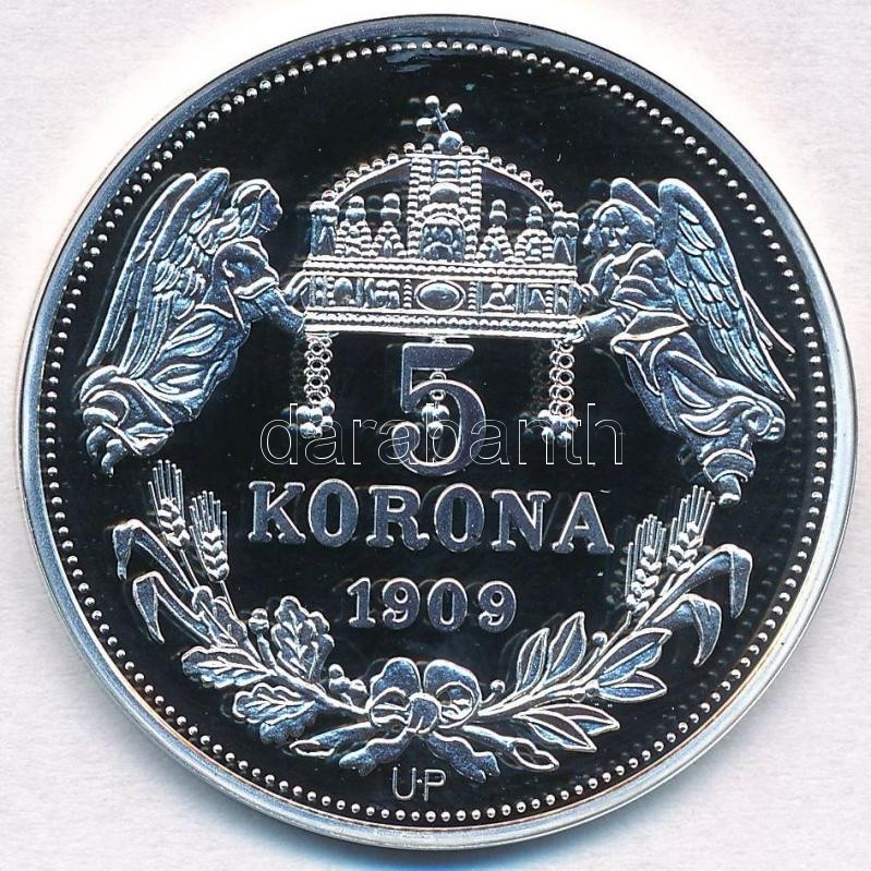 Leírás: DN "Királyi koronák - V. Ferdinánd 5 korona 1909" Ag emlékérem tanúsítvánnyal (20,18g/0.999/38,61mm) T:PP kis patina