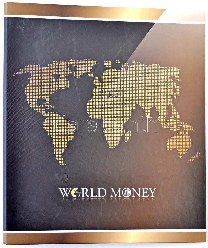"World Money" gyűrűs album bankjegyek, érmés és bankjegyes borítékok vagy karton csomagolású érme szettek tárolására, 16db 183x131mm-es férőhellyel, használt állapotban