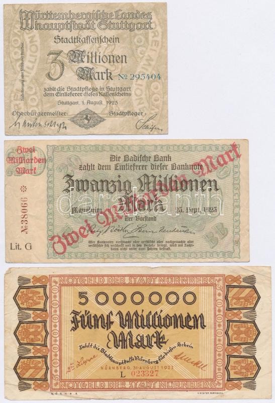 Germany / Weimar Republic 1921-1923. 6pcs of diff necessity notes, including Hannover, Nürnberg, Stuttgart C:F