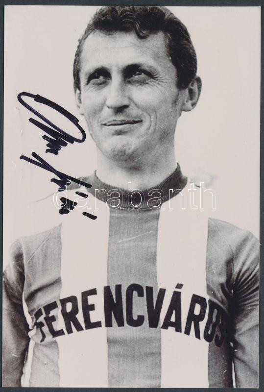 Leírás: Albert Flórián aláírása őt magát ábrázoló fotón