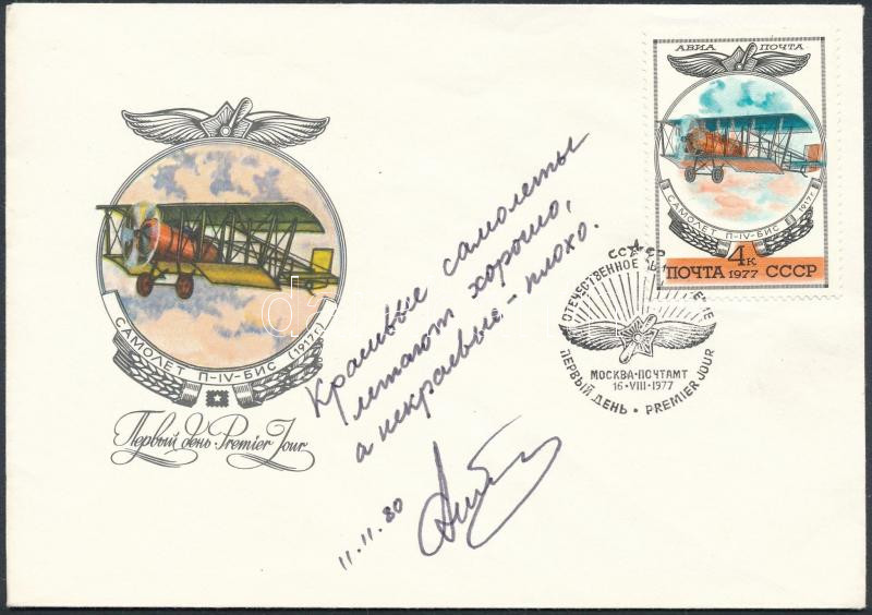Leírás: Oleg Konsztantyinovics Antonov (1906-1984) szovjet repülőmérnök aláírása emlékborítékon /